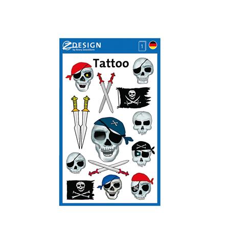 Matrica, tetoválás, 1 ív, 76x120 mm, AVERY ZWECKFORM, "Z-Design No.56632", kalóz halálfejek kardokkal