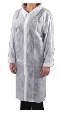 Látogató köpeny, egyszer használatos, tépőzáras, polipropilén, 20g, L méret, fehér